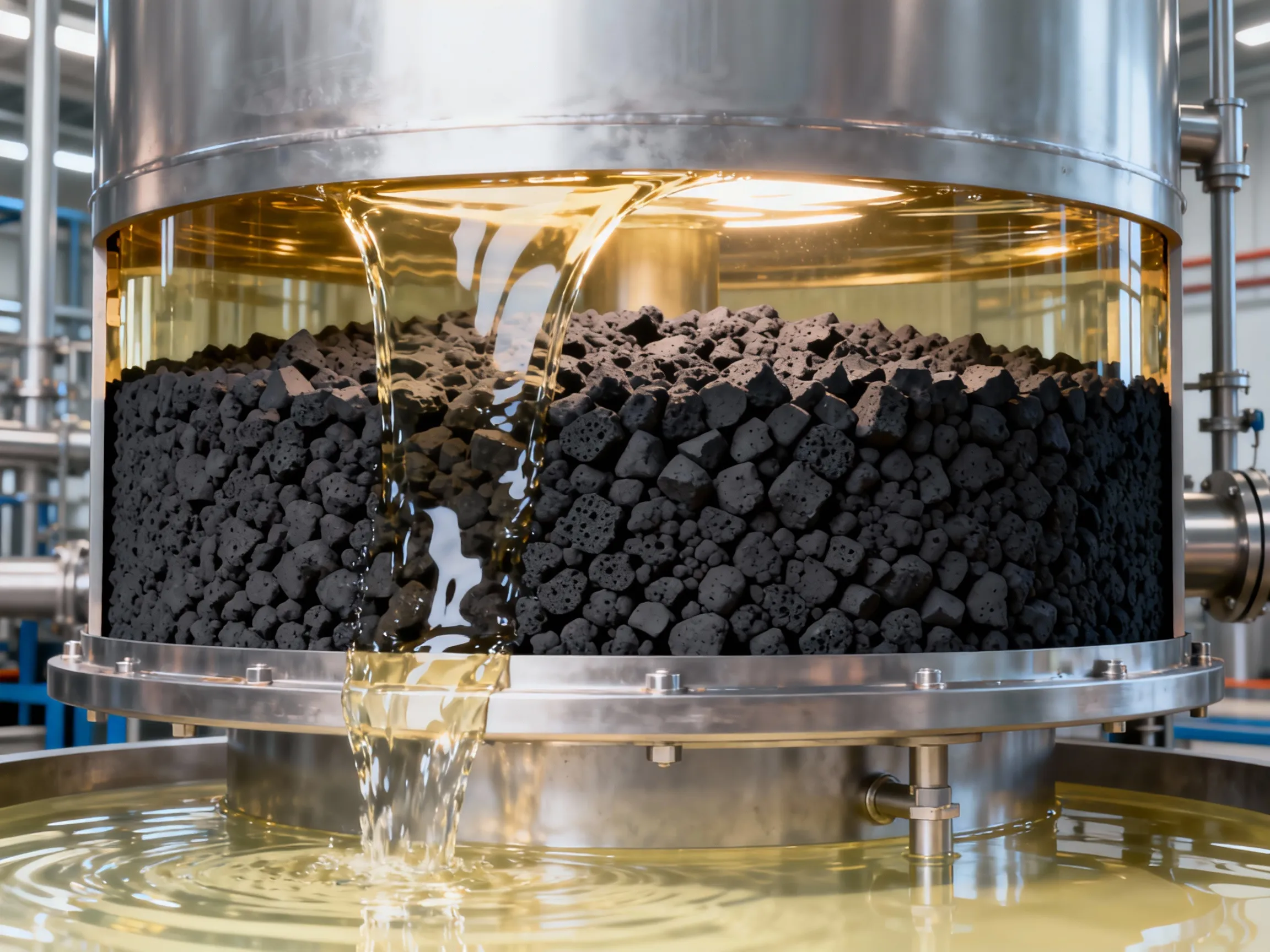 For edible oils (e.g., palm, soybean, coconut) and fats, decolorization is a key step to remove natural pigments (chlorophyll, carotenoids), soap residues, and oxidation products. Granular Activated Carbon (GAC) is frequently used in fixed-bed filters following traditional bleaching clay. The carbon bed provides a final polishing stage, adsorbing trace colorants and contaminants that the clay cannot remove. This solution ensures the oil achieves a light, consistent color and improves its oxidative stability, which is crucial for both appearance and shelf-life in bottled oils and food manufacturing.